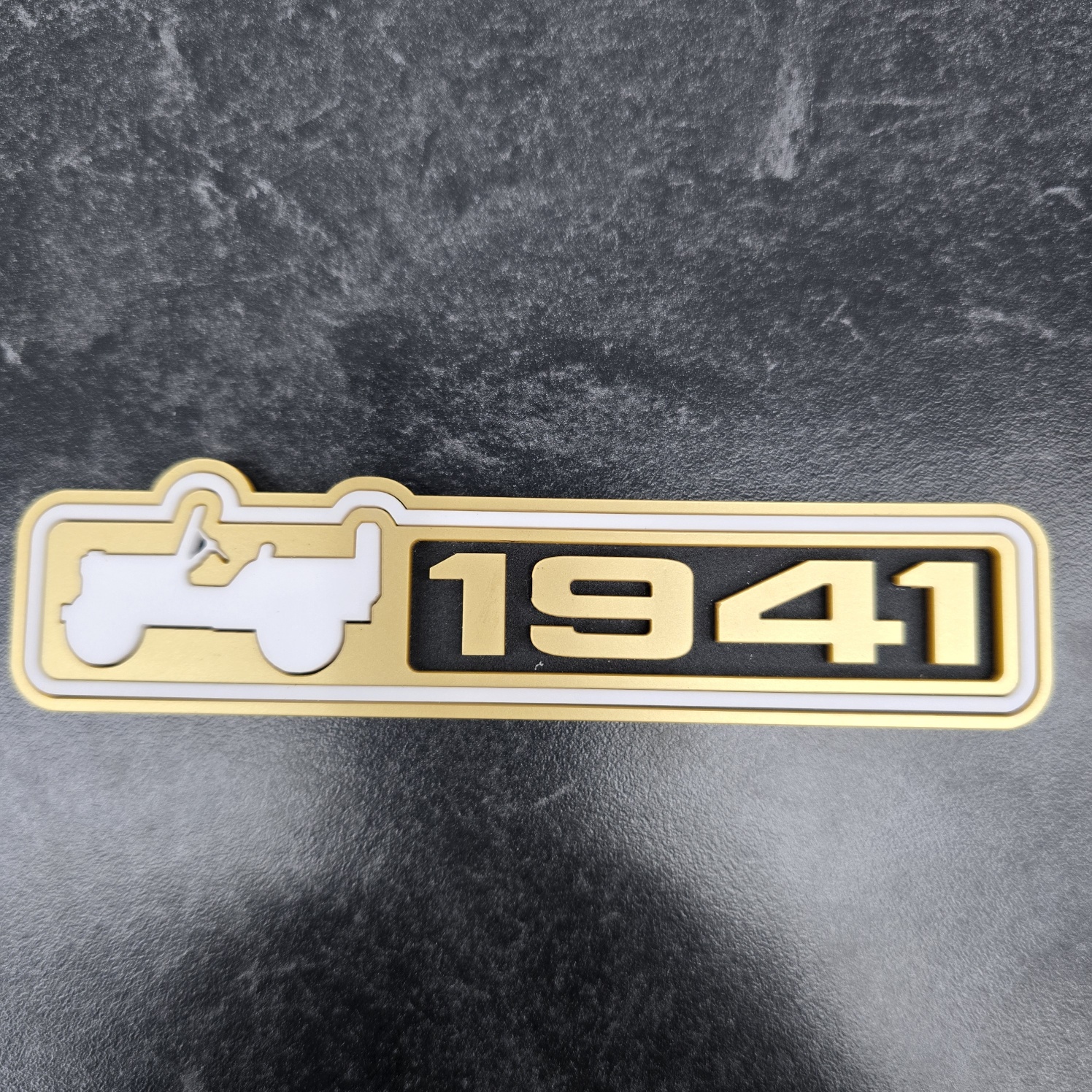 These are made from 1/8″ cast acrylic (stacked for 1/4″ overall thickness). The can be done in one or two colors. They are laser cut and they are held on by waterproof 3M double sided tape.