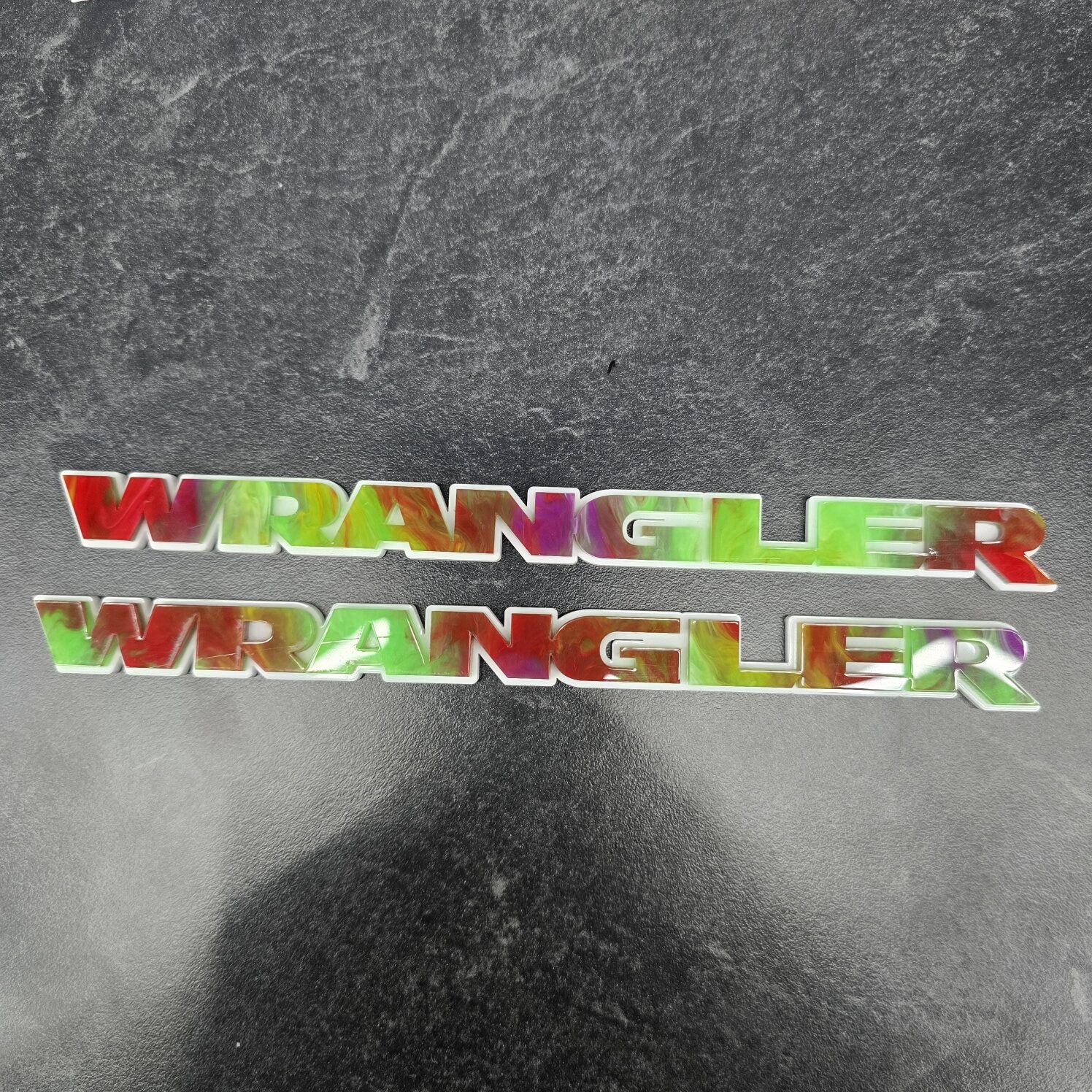 These are made from 1/8″ cast acrylic (stacked for 1/4″ overall thickness). The can be done in one or two colors. They are laser cut and they are held on by waterproof 3M double sided tape.