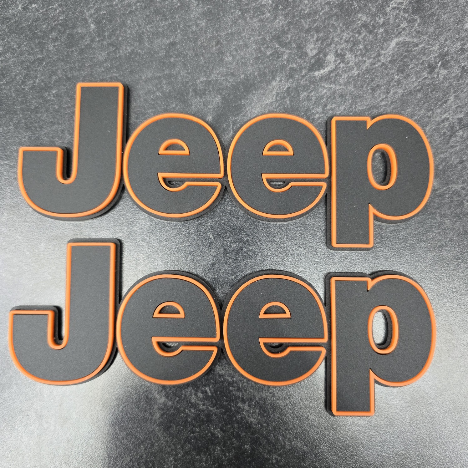 These are made from 1/8″ cast acrylic (stacked for 1/4″ overall thickness). The can be done in one or two colors. They are laser cut and they are held on by waterproof 3M double sided tape.