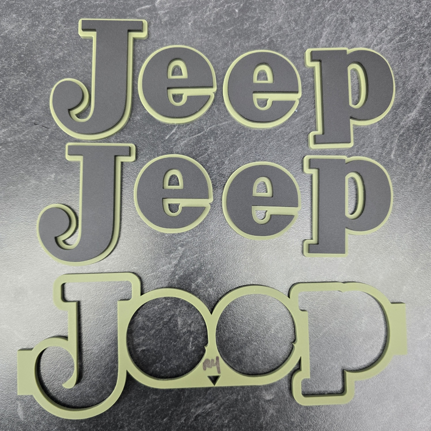 These emblems are custom made in our shop, from 1/8″ cast acrylic, and are laser cut. Final letters stacked will end up around 1/4″ thick. These are 7″ wide. Outlines are approx 1/16″. They have 3m Double sided tape, also laser cut for a perfect fit, installed on the back.