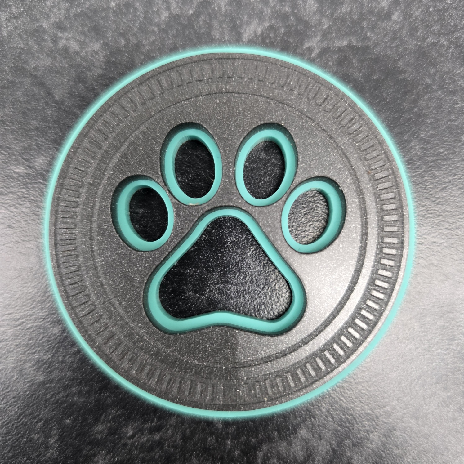 These are two color, engraved, Dog Rated badges. They are made from 2 layers of 1/8″ acrylic, stacked, and will fit in the stock Trail Rated indented location.